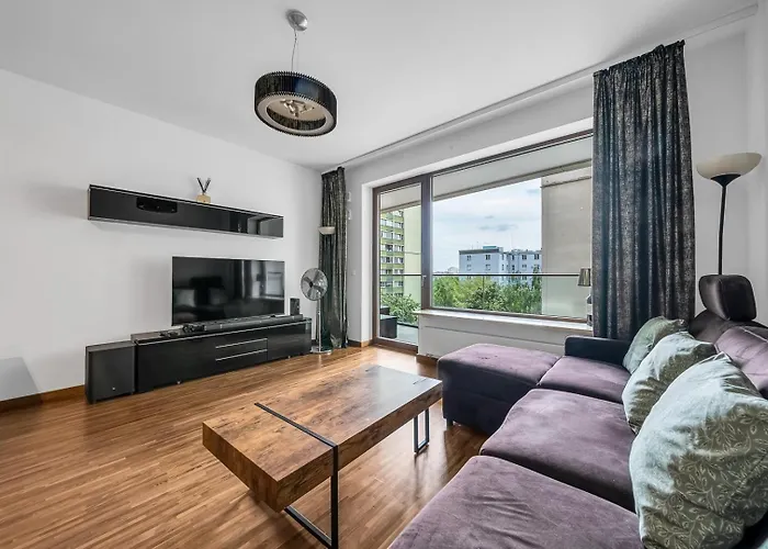 ワルシャワ国立美術館からほんの1.8kmにあるWarsaw Center Business Apt - Parking And Balcony - By Rentujemy は街路の景色を望むル-ムを提供します. このアパ-トは器具でいっぱいの台所に電子レンジ,電気ポット と冷蔵庫の他にバルコニ-,ソファ と座席を完備しています.